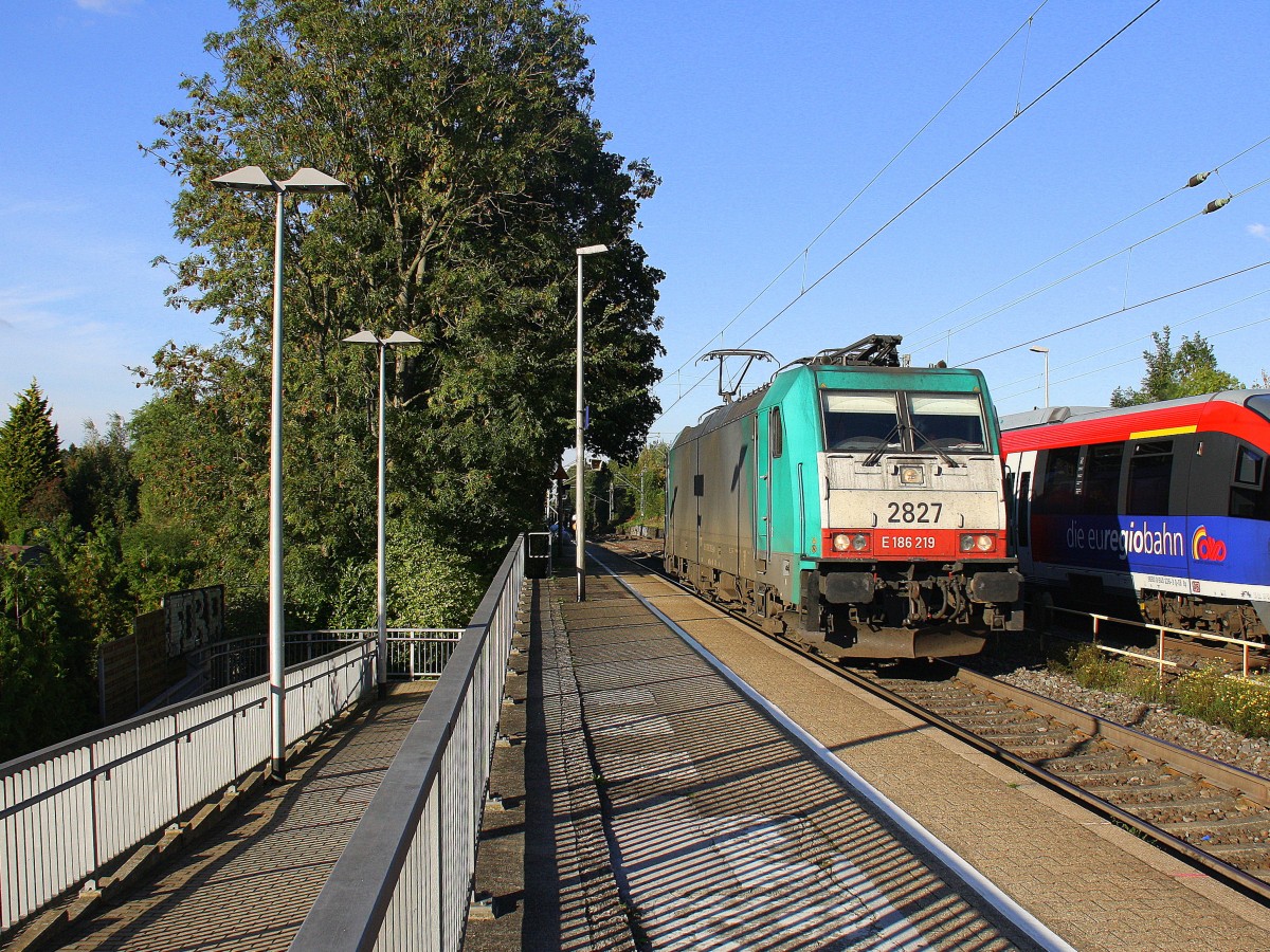 Die Cobra 2827 kommt als Lokzug die Kohlscheider-Rampe hoch aus Richtung Neuss und fährt in Richtung Aachen-West und fährt durch Kohlscheid in Richtung Richterich,Laurensberg,Aachen-West.