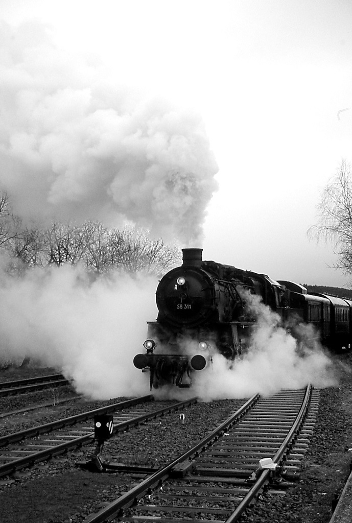 Bei einer Plandampfveranstaltung 1993 wartet 62 015 im Bahnhof Meiningen auf ihre nächsten Aufgaben. Leider ist diese schöne Maschine nicht mehr betriebsfähig.