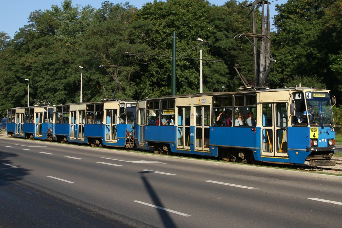Die kantige Baureihe Konstal 105Na wird zu meiner Freude in Krakau weiterhin eingesetzt. Bild vom 24.08.2015.