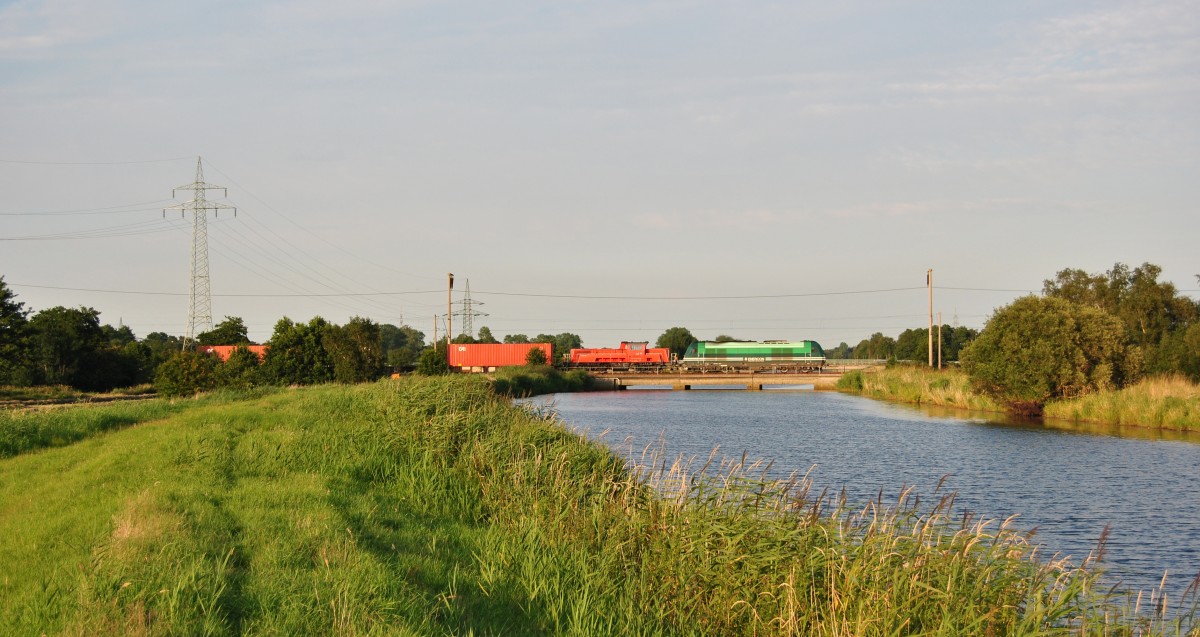140 774-1 fuhr am 06.08.2015 mit einem BLG Autozug von Emden Richtung Bremen, hier bei Nüttermoor.