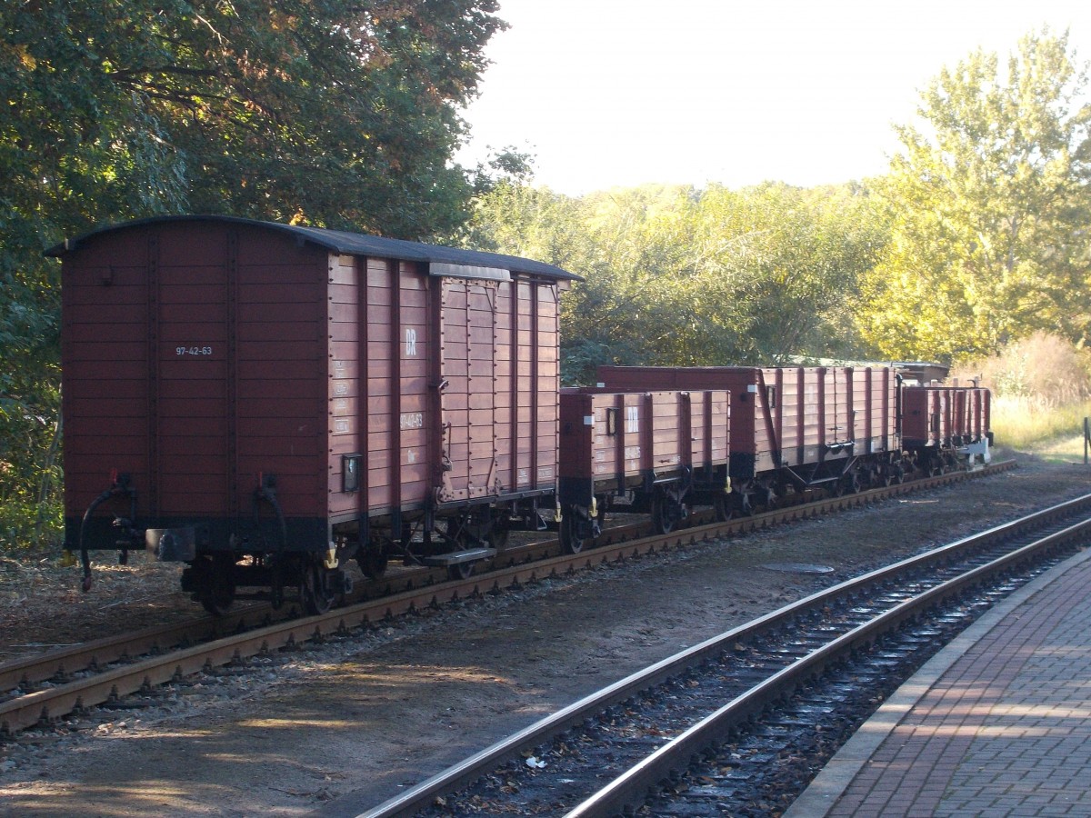 Die Wagen für den Fotogüterzug standen,am 11.Oktober 2015,in Binz.
