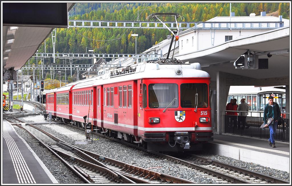 Be 4/4 515 Pendel als Ersatzzug nach Pontresina für den verspäteten RE1129 ab Chur. (07.10.2015)