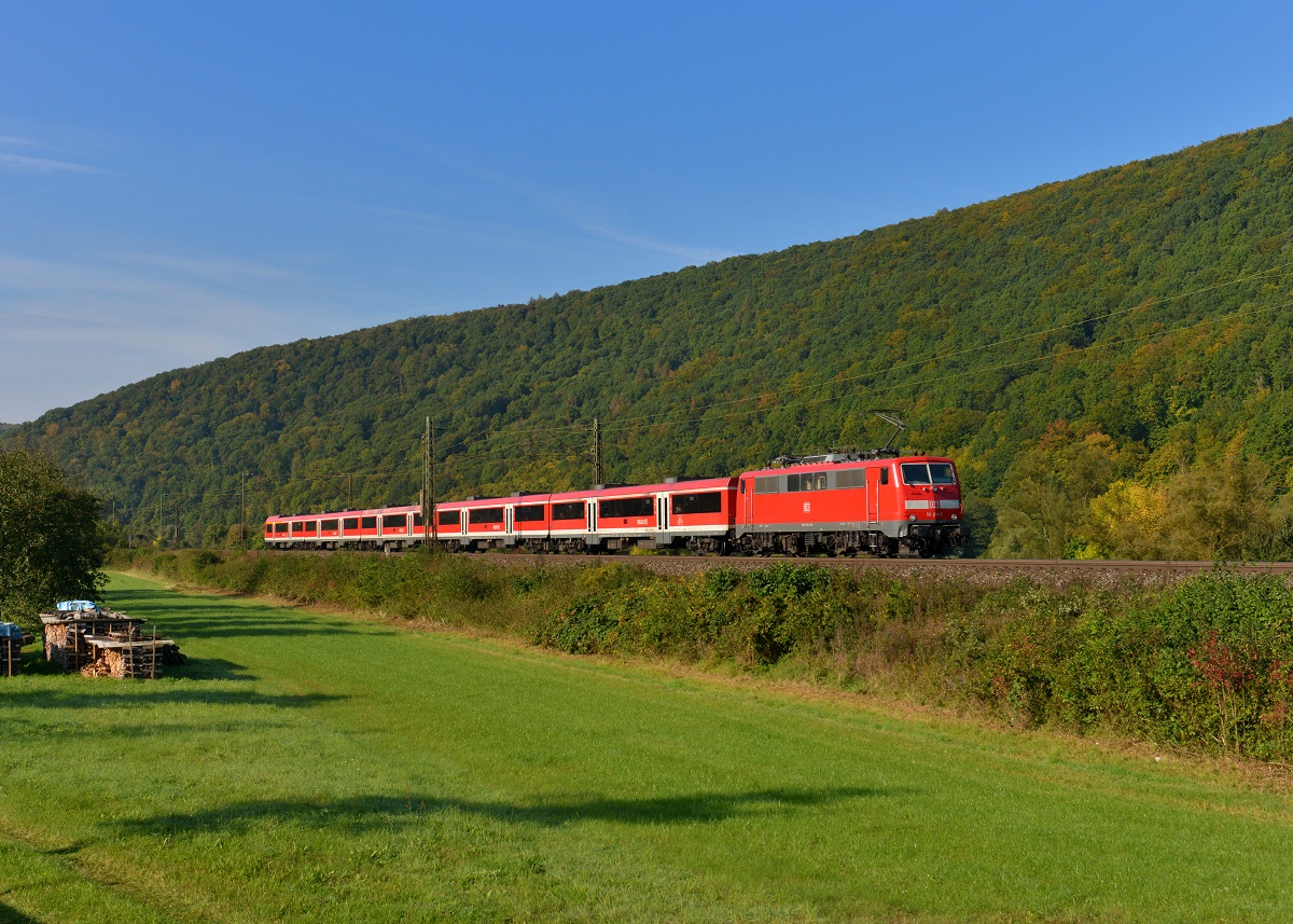 111 214 mit einem RE am 28.09.2013 bei Wernfeld.