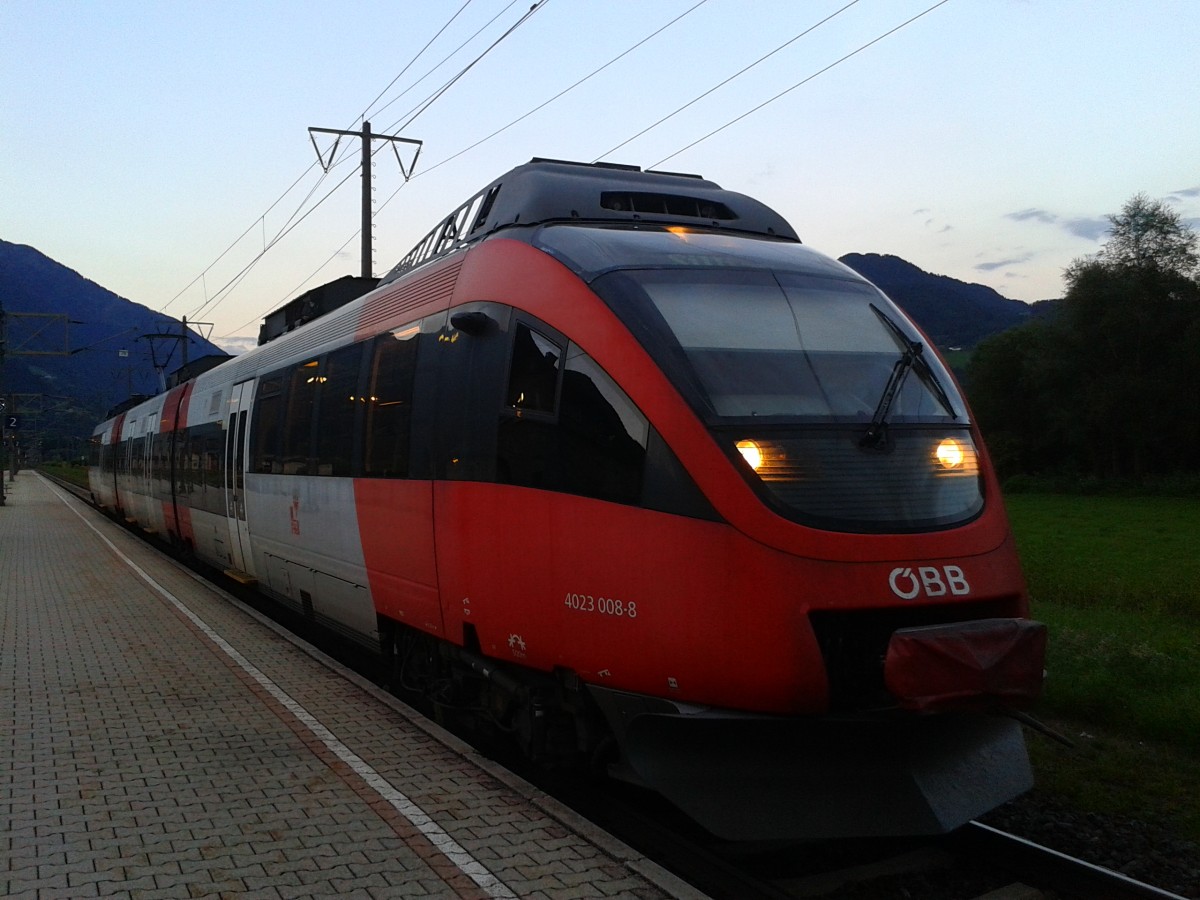 4024 008-8 als R 4878 (Spittal-Millstättersee - Sillian) am 18.8.2015 beim Halt in Greifenburg-Weißensee.