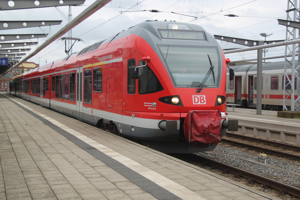 429 528-3(Hansestadt Stralsund)als RE 9 von Rostock Hbf nach Sassnitz stand am 11.09.2015 außerplanmäßig am Gleis 5 da der IC 2213 wieder Probleme gemacht hat.