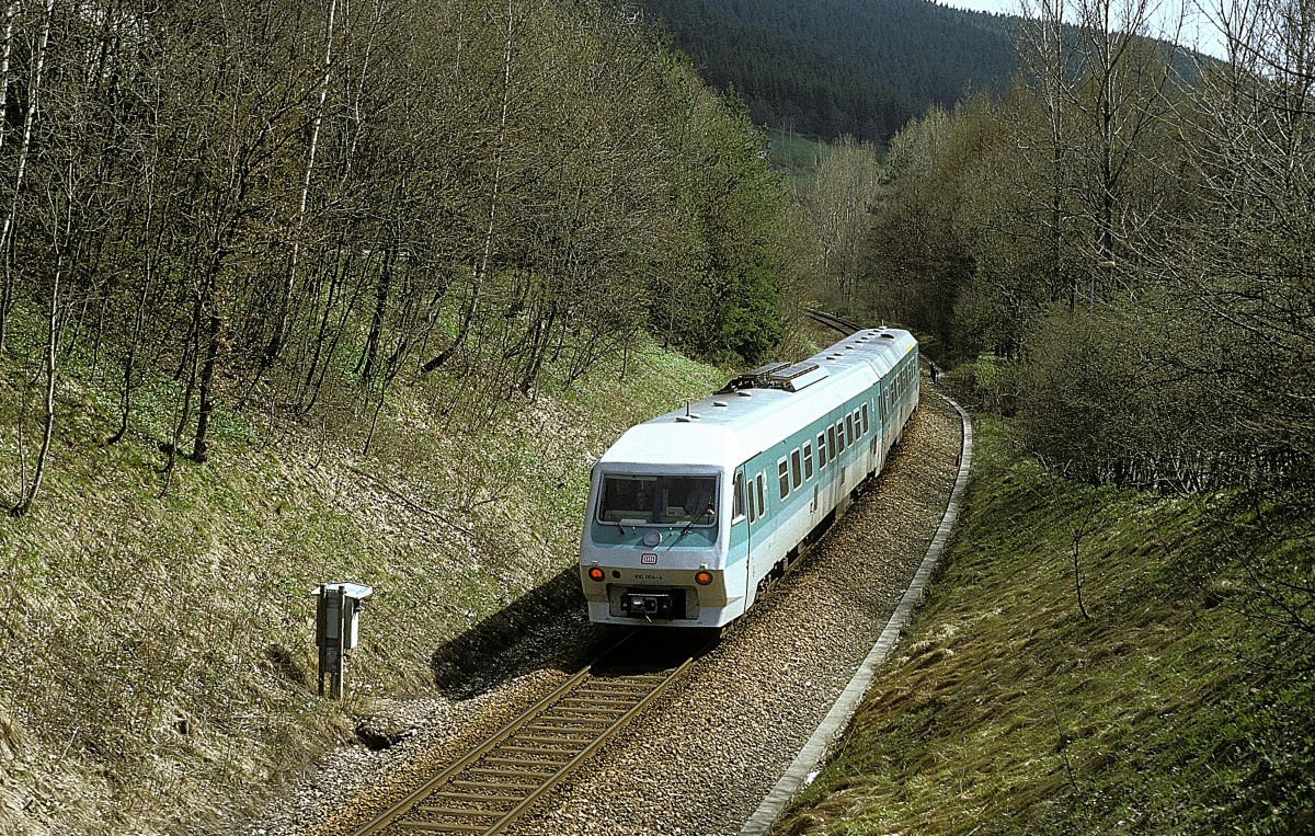 hier die Ausfahrt des VECTUS im sehr nostalgischen Bahnhof WESTERBURG//Westerwald