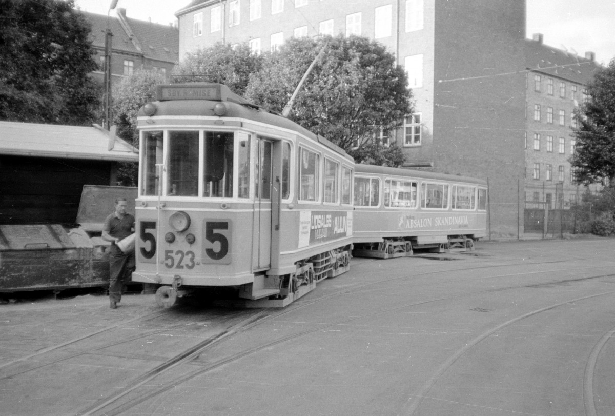 København / Kopenhagen KS SL 5 (Tw 523 + Bw 1556) Sundby remise / Betriebshof Sundby im August 1967.
