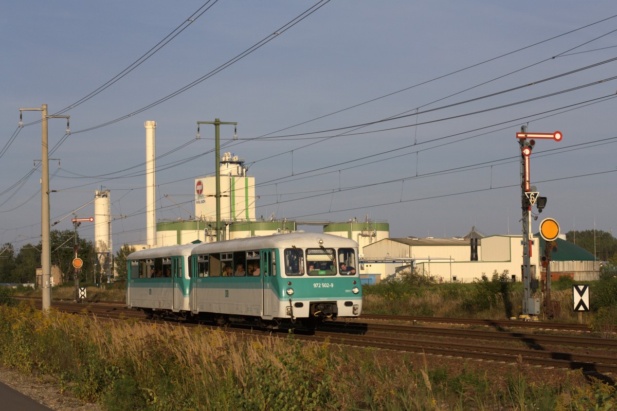 Die als Seenlandbahn verkehrenden 972 502-9 und 772 413 der OSEF konnten am 13.09.2015 auf der Rückfahrt nach Dresden-Neustadt am Abzw. Brieske aufgenommen werden.