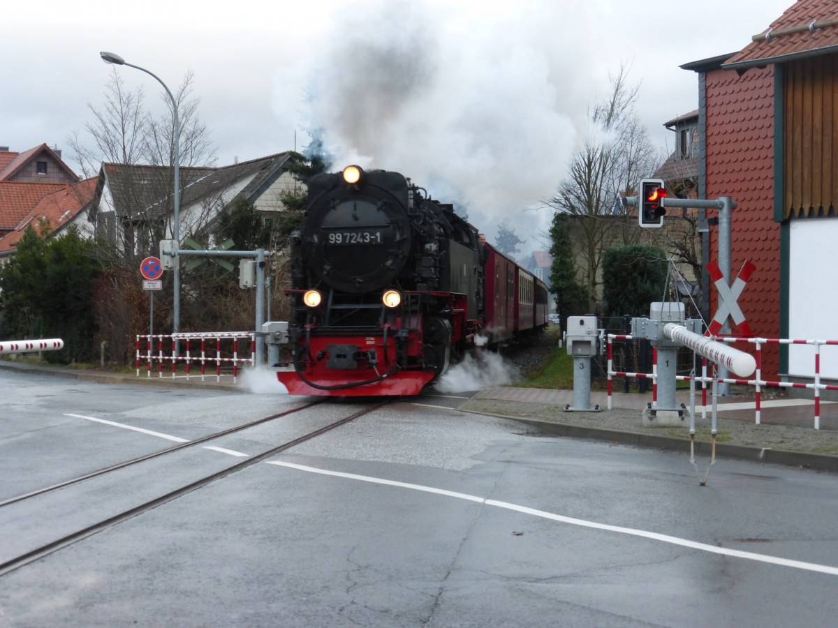 Die Dampflok 52 8038 der Dampfeisenbahn Weserbergland e.v. hat ihren Zug umfahren, um nun Rauchkammer voraus ihrem Tagesziel, dem Bahnhof Hillegossen, entgegen zu eilen. Von dort aus soll sie am 13.09.2015 Sonderfahrten nach Detmold unternehmen. Aufgenommen am 12.09.2015