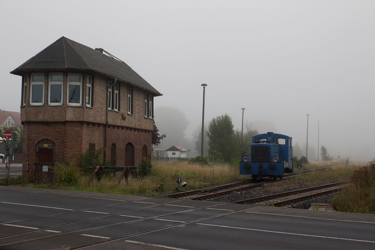 Lok 5 der IG Hirzbergbahn e.V. war am 21.08.15 im stillgelegten Bahnhof Vacha abgestellt.