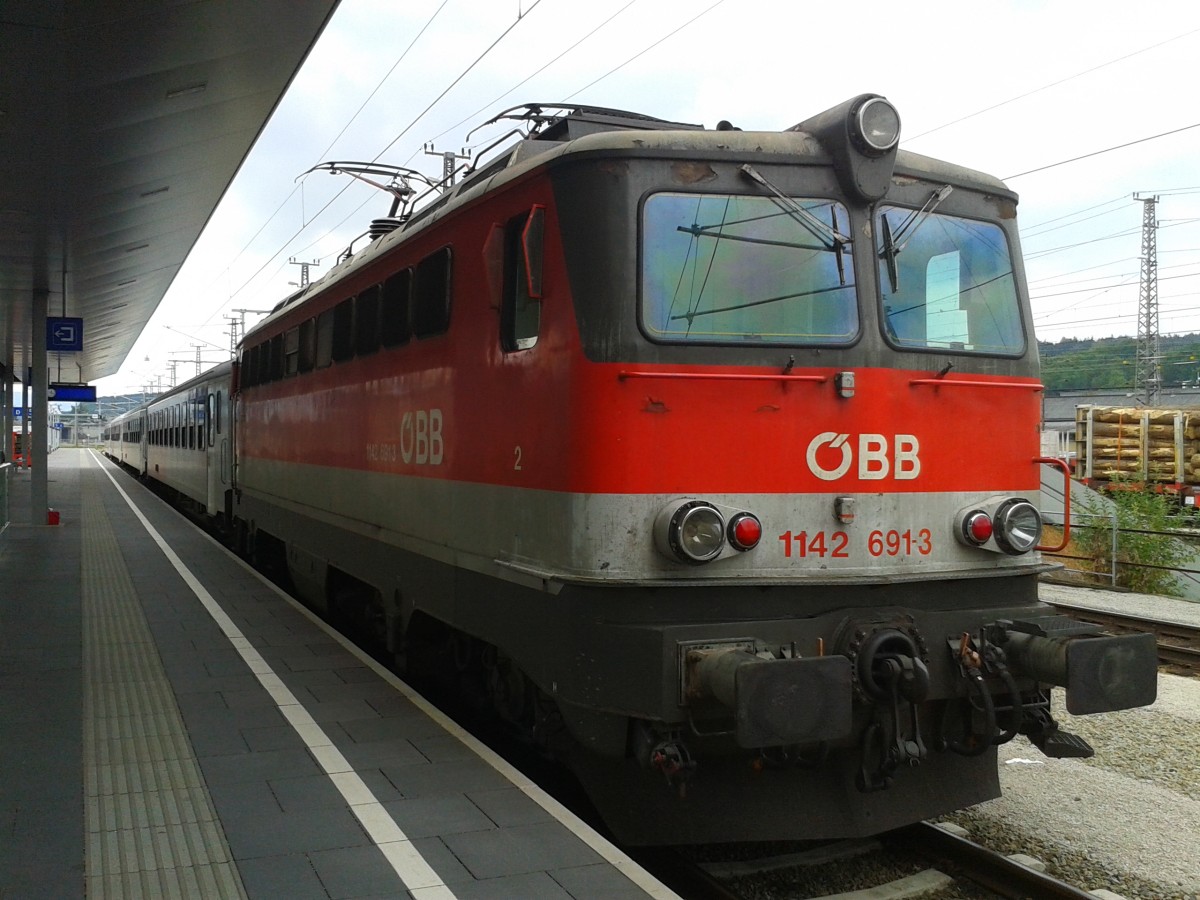 1142 691-3 mit R 3418 (Attnang-Puchheim - Obertraun-Dachsteinhöhlen) am 18.8.2015 in Attnang-Puchheim