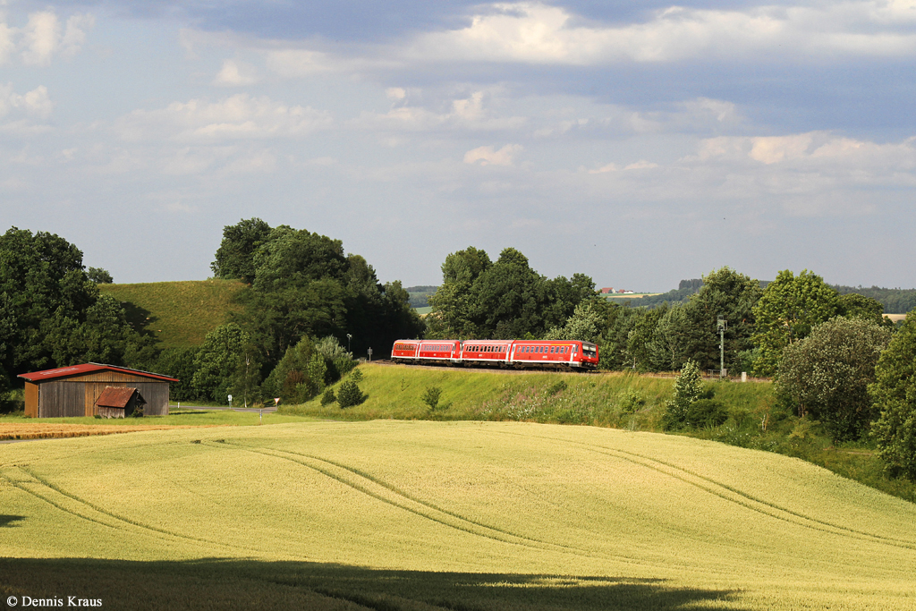 218 417 mit IRE 4231 am 11.07.2015 bei Winterstettenstadt.