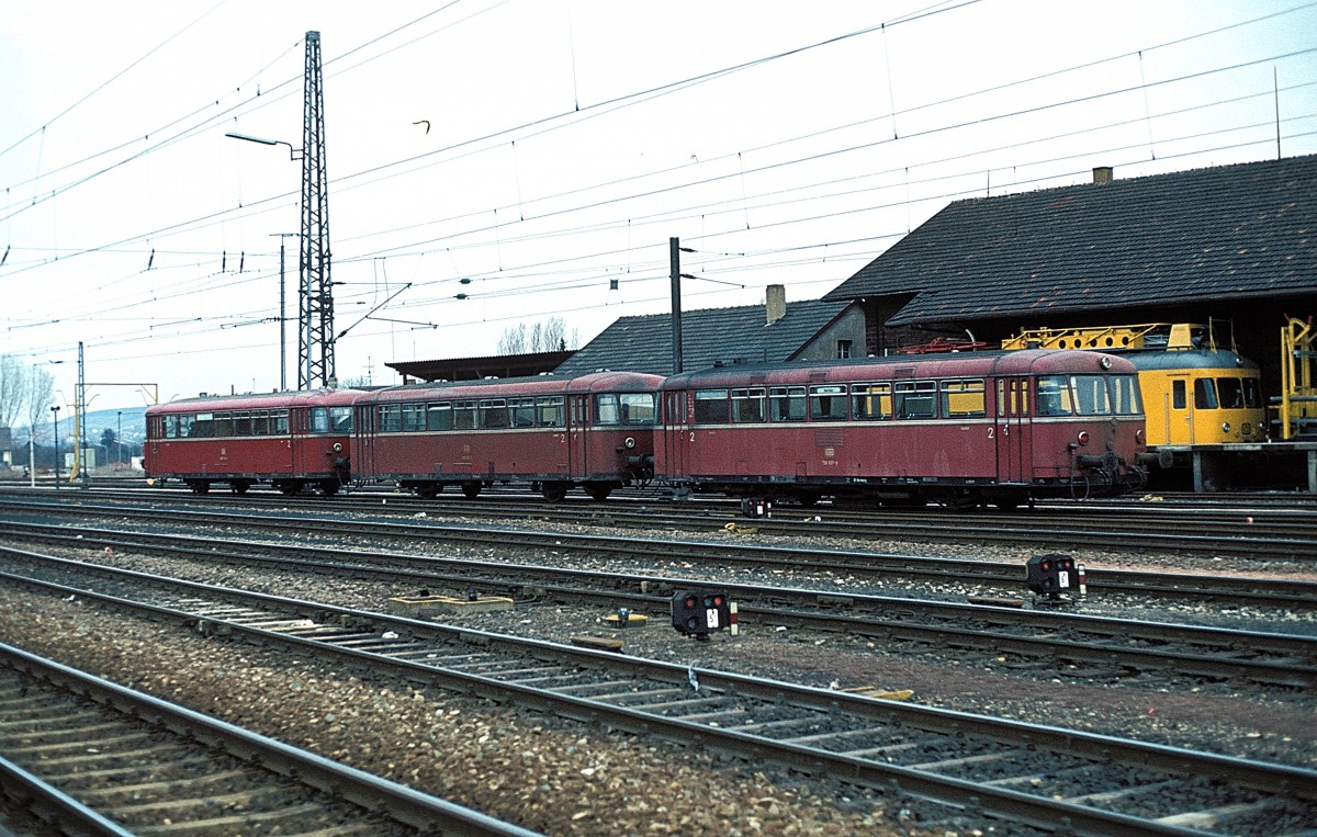 BVB: Abgestellte Strassenbahnen vor dem Depot Wiesenplatz im Oktober 1995.