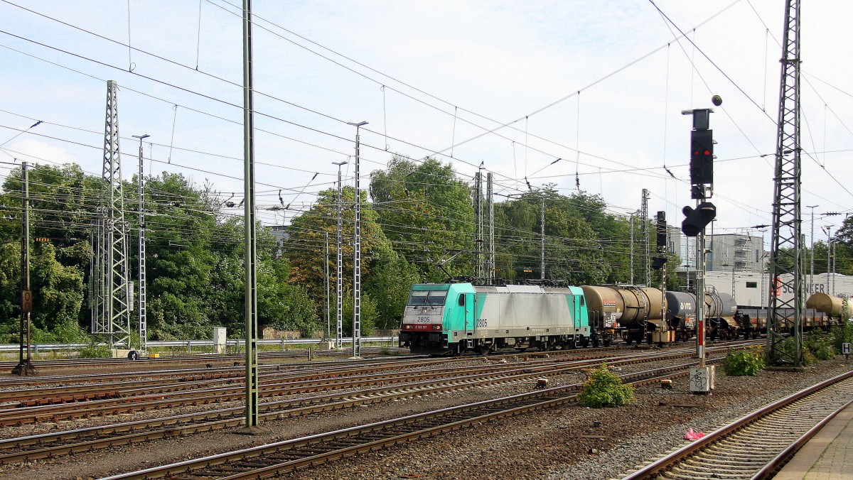 Die Cobra 2805 fährt mit einem Containerzug aus Gallarate(I) nach Antwerpen-Oorderen(B), aufgenommen bei der Ausfahrt aus Aachen-West in Richtung Montzen/Belgien. Aufgenommen vom Bahnsteig in Aachen-West. Bei Sonne und Wolken am Nachmittag vom 20.9.2015.