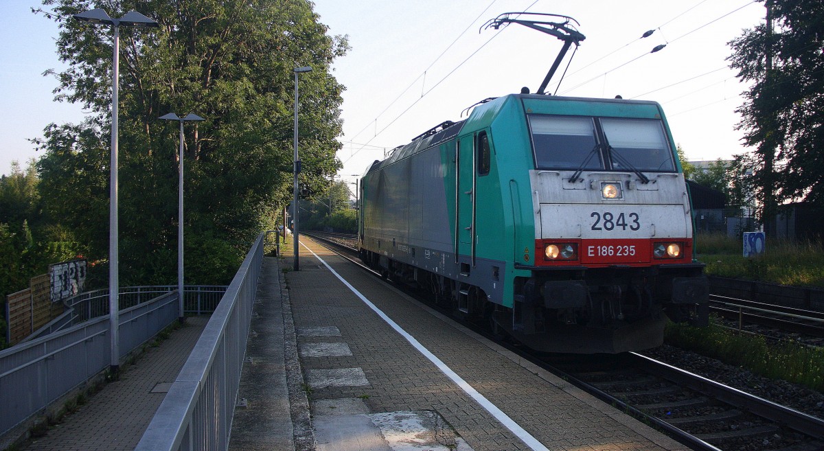 Die Cobra 2843 kommt als Lokzug die Kohlscheider-Rampe hoch aus Richtung Neuss und fährt in Richtung Aachen-West und fährt durch Kohlscheid.