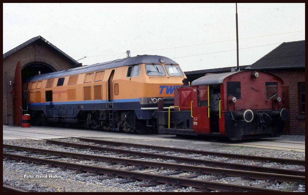 MOB/CEV/GFM: Im August 1995 konnte der CEV Te 2/2 81 (1921/63) mit dem GFM Güterwagen 913 bei einem Rangiermanöver auf dem MOB Bahnhof SAANEN verewigt werden. Im Hintergrund ist ein auf den nächsten Einsatz wartenden MOB-Bus der Marke NAW erkennbar.