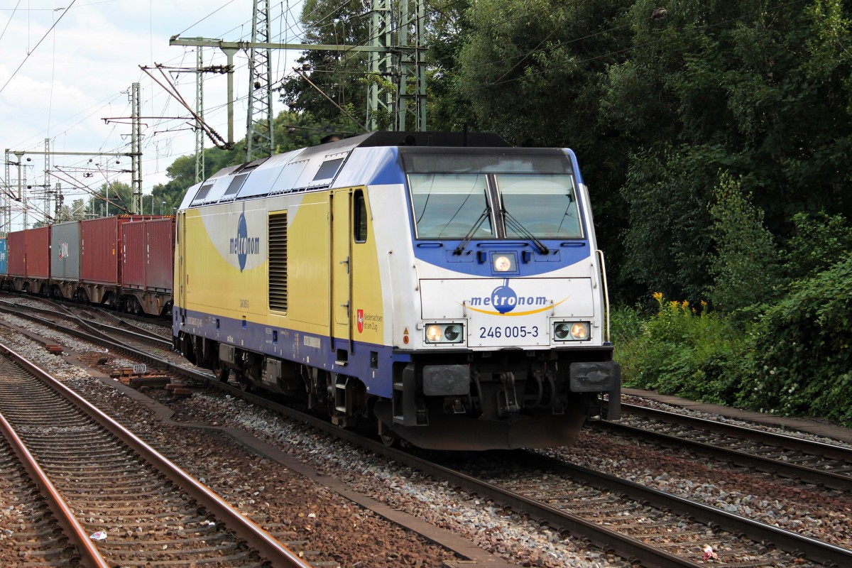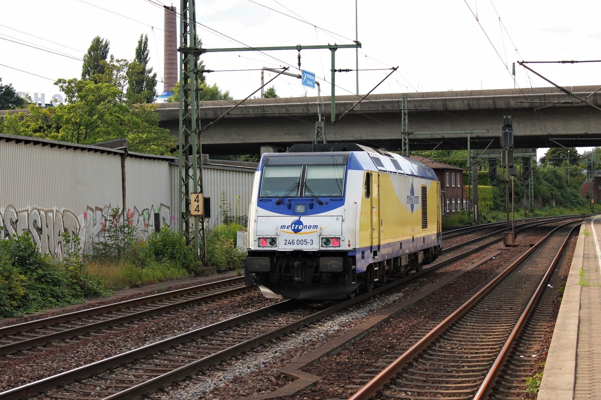 Durchfahrt am 13.08.2014 von der Lz fahrenden 246 005-3 von metronom in Richtung Hafen/Hbf.