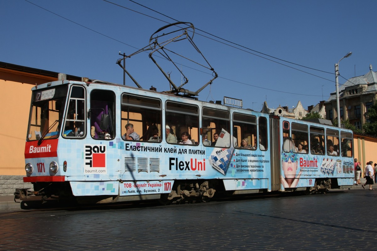 TATRA T4 in blauer Werbung am 19.08.2015 in Lviv.