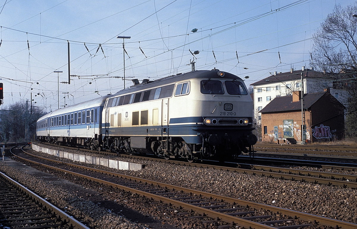 218 416-6 am 18.3.2016 nahe des Bahnhofs München Hacherbrücke.