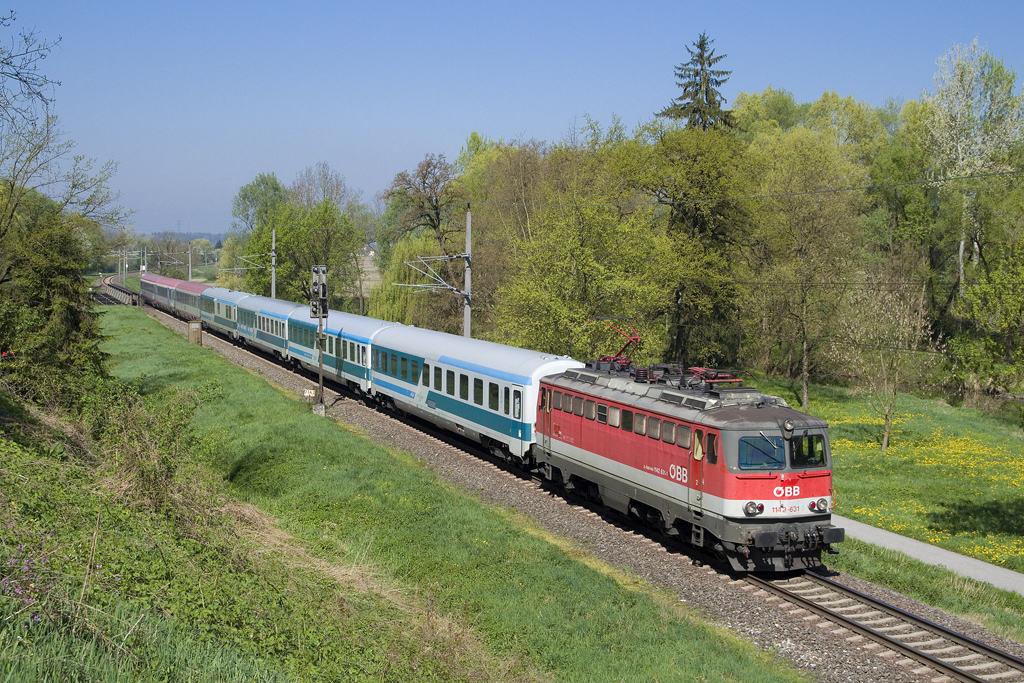 Am 12. April 2016 ist 1142 631 mit EC 151 "Emona" bei Wildon unterwegs.