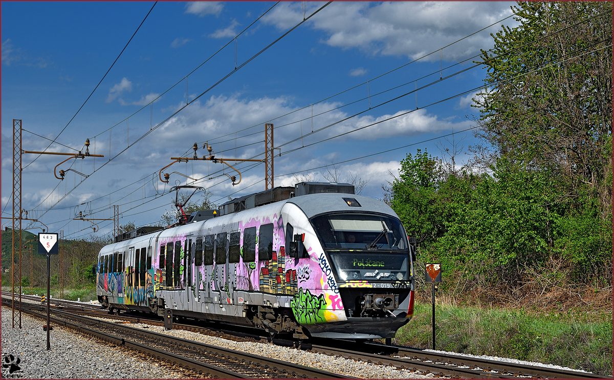 SŽ 312-019 fährt durch Maribor-Tabor Richtung Poljčane. /15.4.2016