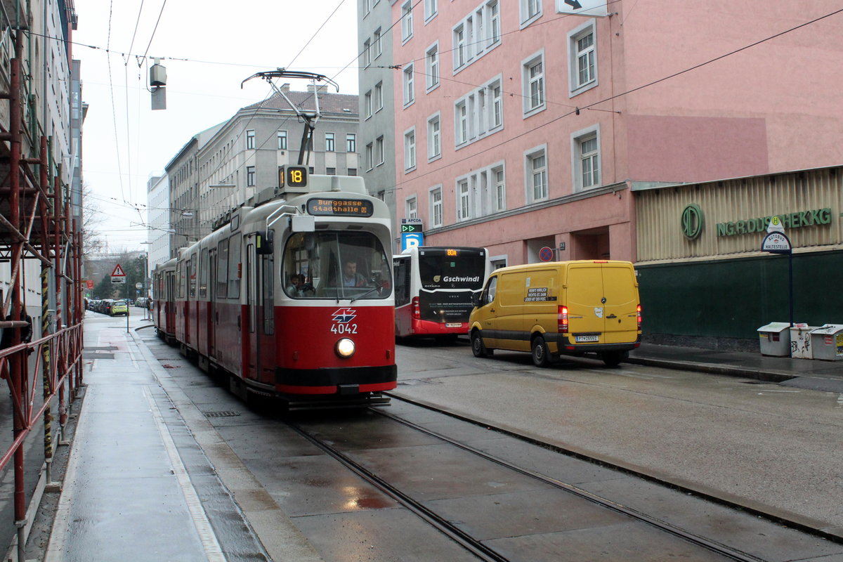 Wien Wiener Linien SL 18 (E2 4042 + c5 1442) Landstraße, Würtzlerstraße am 18. Februar 2016.