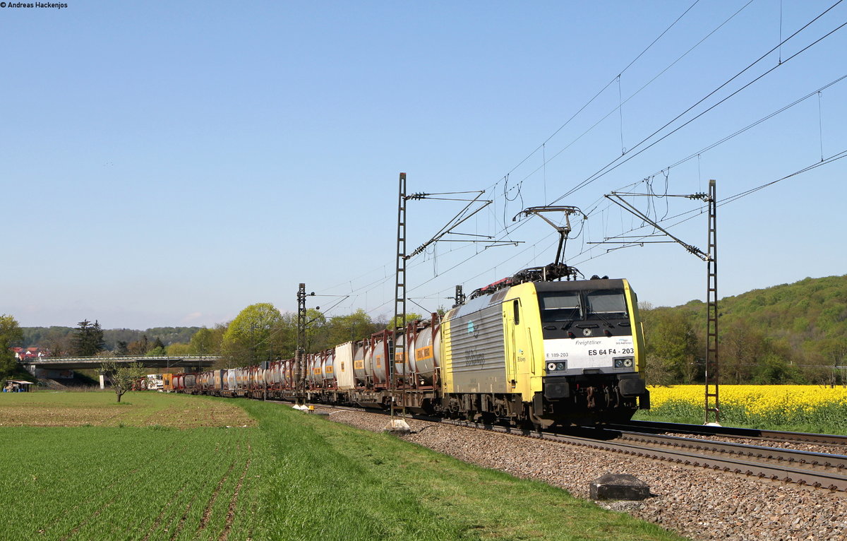 151 017-1 (HSL) hier am 21.04.16 mit einem Containerzug in Jößnitz von Glauchau/Sachs. nach Hof.