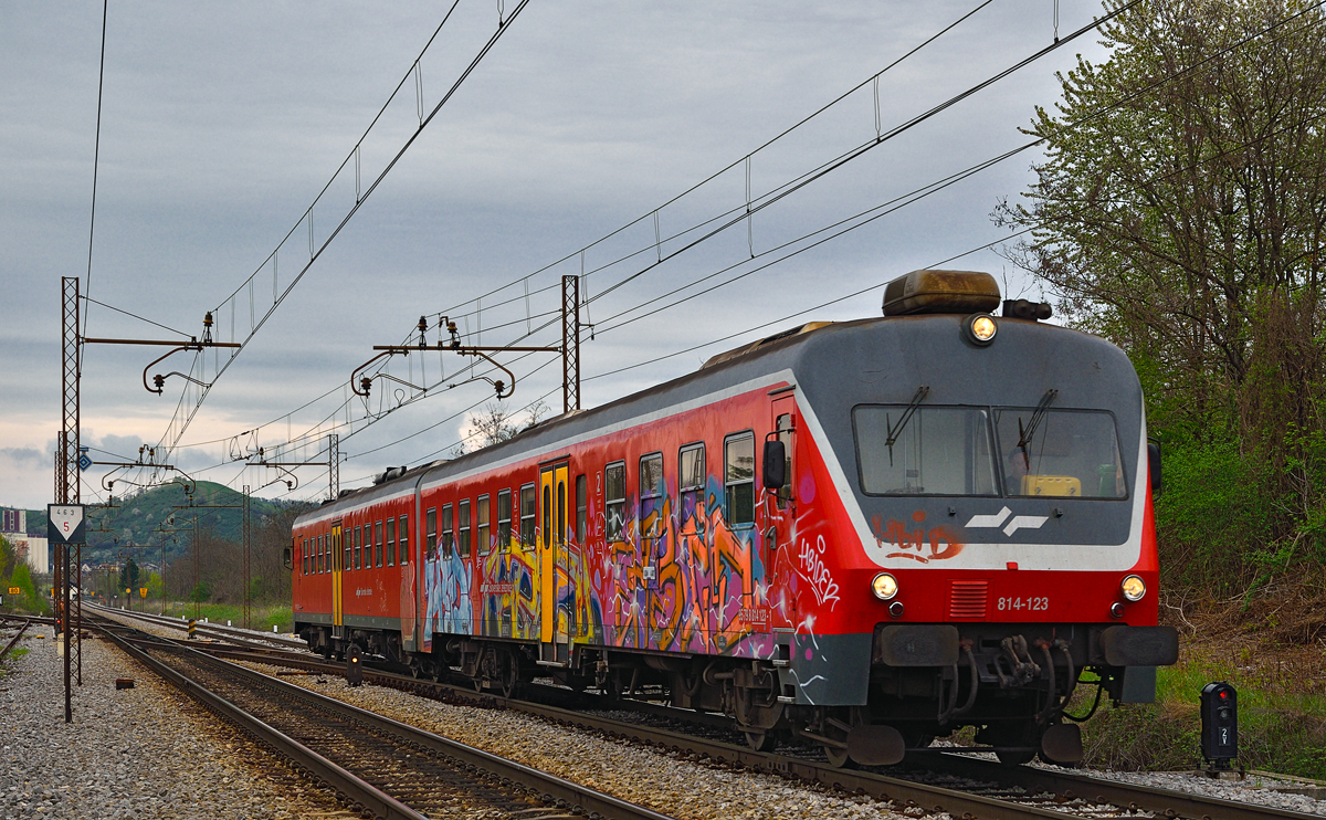 SŽ 814-123 fährt durch Maribor-Tabor Richtung Ormož. /9.4.2016
