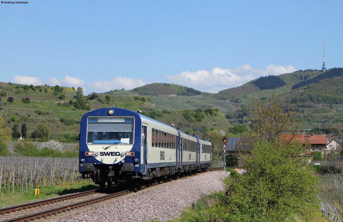 VS 202, VT 126 und VT 127 als SWE74216 (Breisach-Riegel-Malterd.NE) bei Oberrotweil 29.4.16