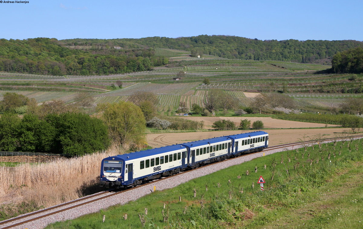 VT 127, VT 126 und VS 202 als SWE74219 (Endingen-Breisach) bei Oberrotweil 29.4.16