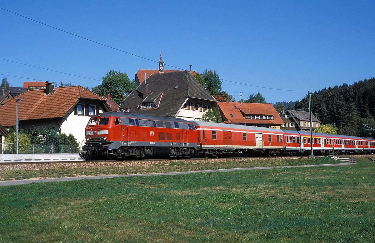 218 409-1 mit dem IRE 3220 (Ulm Hbf-Neustadt(Schwarzw)) bei Unadingen 3.4.16