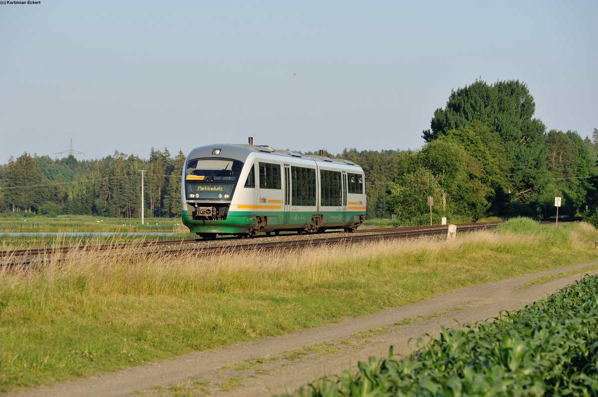 VT14 als OPB79742 von Regensburg Hbf nach Marktredwitz im Abendlicht bei Oberteich, 01.07.2015