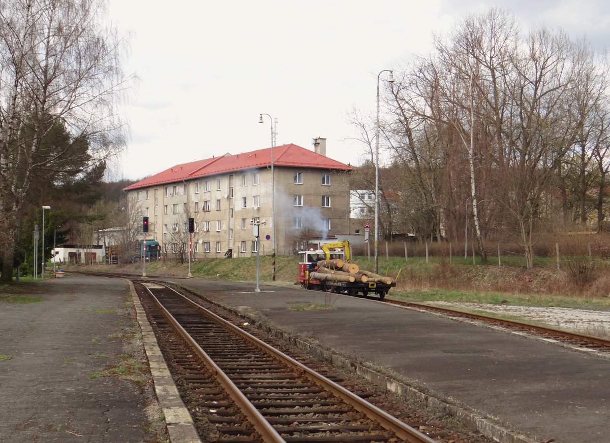 Am 08.04.16 bot sich mir in Aš dieses schöne Bild mit 810 425-9 und einem mit Holz beladenen MUV-69.1-1230.