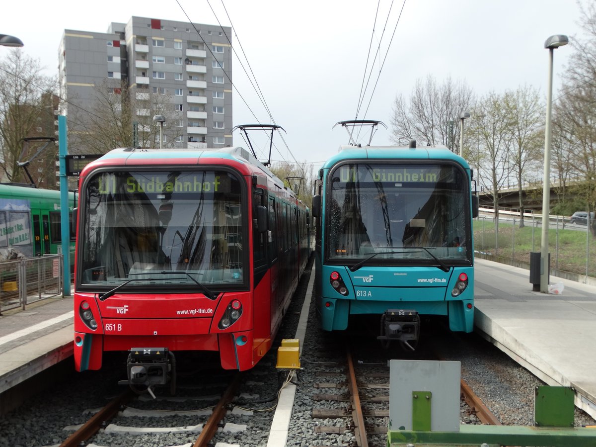 VGF Bombardier U5-25 Wagen 651 und 613 am 03.04.16 in Frankfurt Ginnheim