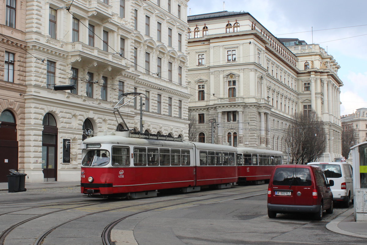 Wien Wiener Linien SL 49 (E1 4556 + c4 1365) Innere Stadt, Hansenstraße am 24. März 2016.
