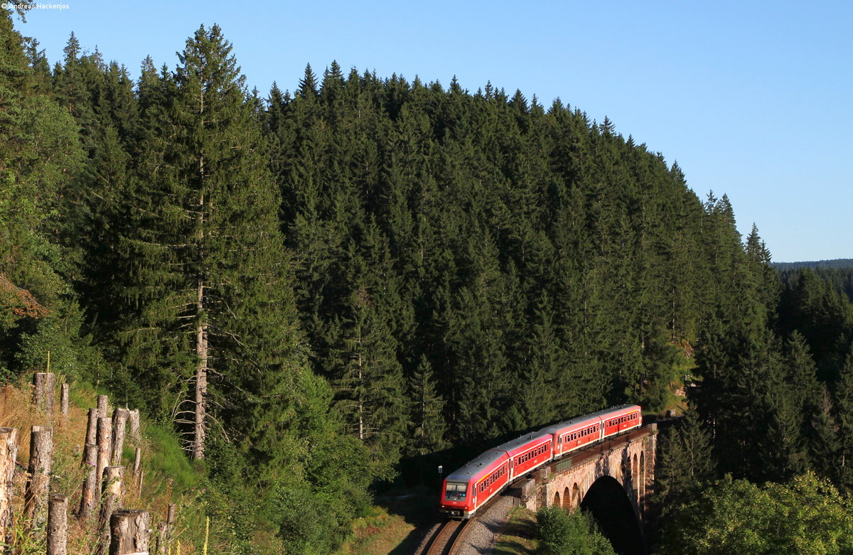 611 020-8 und 611 004-2 als IRE 3214 (Ulm Hbf-Neustadt(Schwarzw)) auf der Schwendeholzdobelbrücke 7.8.16