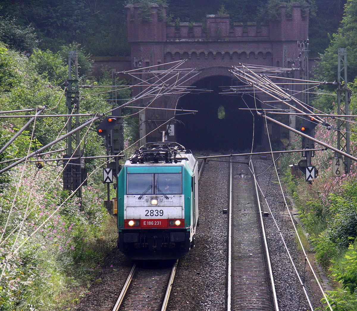 Die Cobra 2839 kommt als Lokzug aus Belgien nach Aachen-West und kam aus dem Gemmenicher-Tunnel und fährt die Gemmenicher-Rampe herunter nach Aachen-West. Aufgenommen bei Reinartzkehl an der Montzenroute.