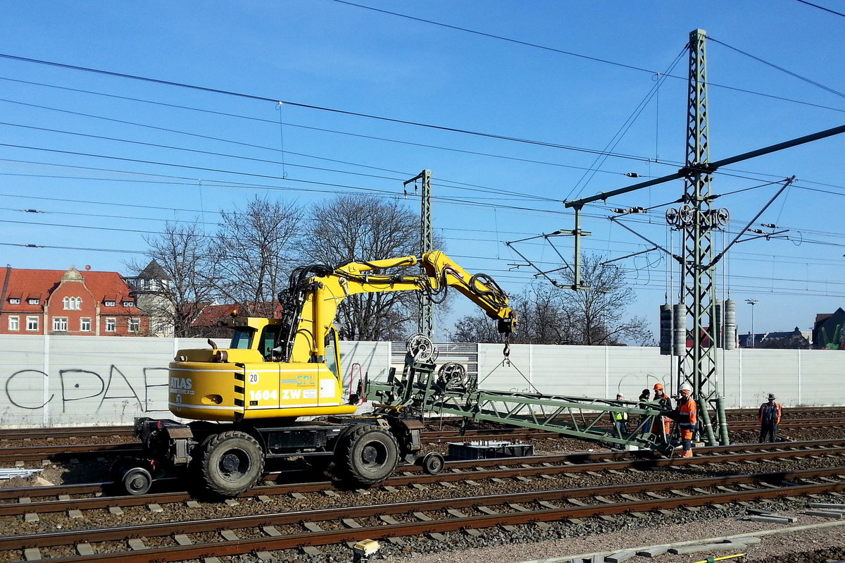 Ein SPL ATLAS TEREX 1604 ZW, am 09.03.2014 bei Mastarbeiten in Erfurt Hbf.