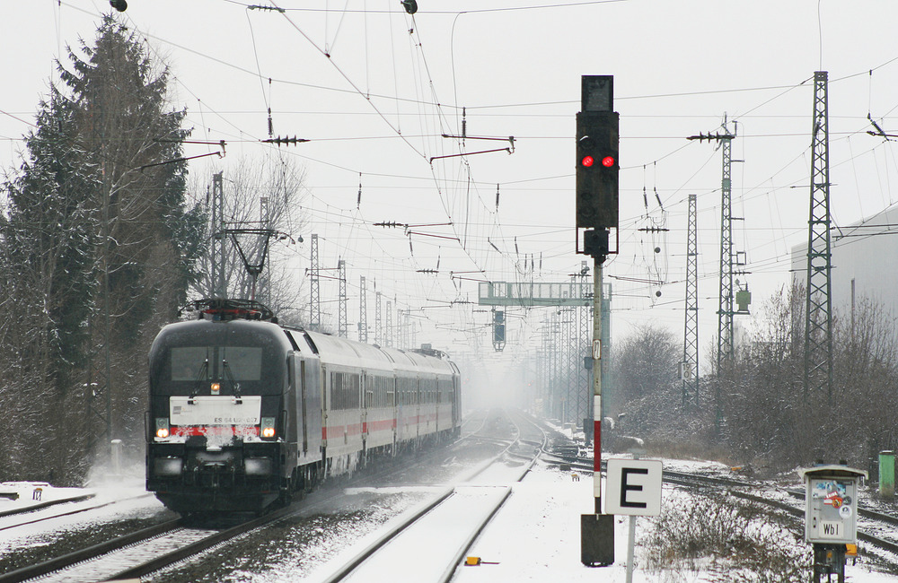 Im Bahnhof Roisdorf wurde die von der DB angemietete ES 64 U2-017 nebst IC am 14. Februar 2010 abgelichtet.