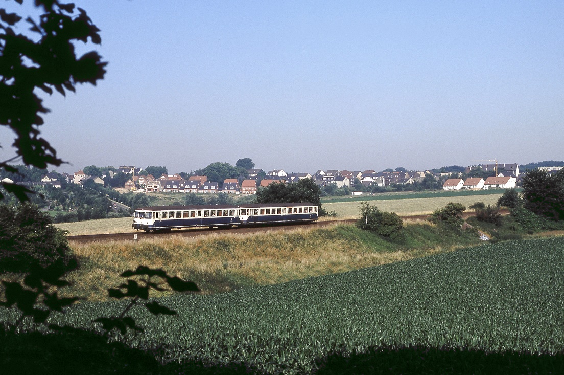 Irgendwo zwischen Hagen und Brügge (Westfalen) entstand diese Aufnahme vom Alstom-Vorführ-LINT, der zu diesem Zeitpunkt zeitweise bei der DME im Einsatz war. Das Foto wurde am 30. April 2006 aufgenommen.