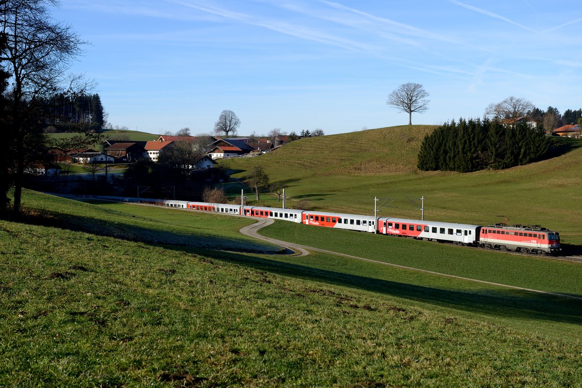 Der 21. Dezember 2013 versprach noch einmal ein schöner Tag zu werden. Allerdings befand sich ein Großteil der KBS 951 im Nebel, der sich im Tagesverlauf auch nicht auflöste. Nur in der Gegend um Traunstein schien die Sonne. So wurde dem M 79013, der täglich verkehrenden Meridian Ersatzleistung mit ÖBB 1142 und CityShuttle-Wagen, bei Axdorf aufgelauert.