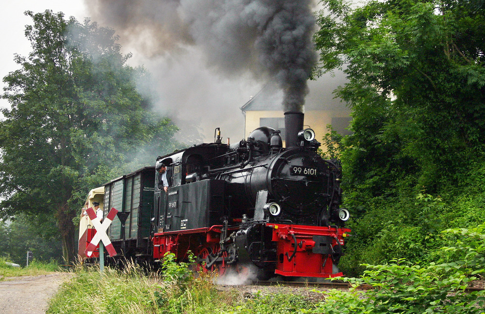 Mit einem freundlichen Winken verabschiedet sich am Abend des 18.10.2015 im Bahnhof Quedlinburg, der nette Lokführer von 99 6001 von seinen letzten Sonderzug-Passagieren, welche er heute bei einem sehr langen Einsatz, gemeinsam mit seinem Heizer, kreuz und quer durch den Harz chauffiert hat, wobei auch etliche Scheinanfahrten für die Film- und Fotogemeinde auf dem Programm standen, was die Sache sicher nicht vereinfacht hat! Für diesen Einsatz möchte ich mich beim Lokpersonal und natürlich auch bei der IG HSB ganz herzlich bedanken. Hat alles wunderbar geklappt, auch wenn Petrus uns an diesem Tag nicht besonders wohlgesonnen war! Ironischerweise schickte uns dieser den einzigen schwachen Sonnenstrahl des Tages ausgerechnet bei dieser Abschiedsszene!! Nö, Petrus, das geht auf jeden Fall besser!!! ;-)