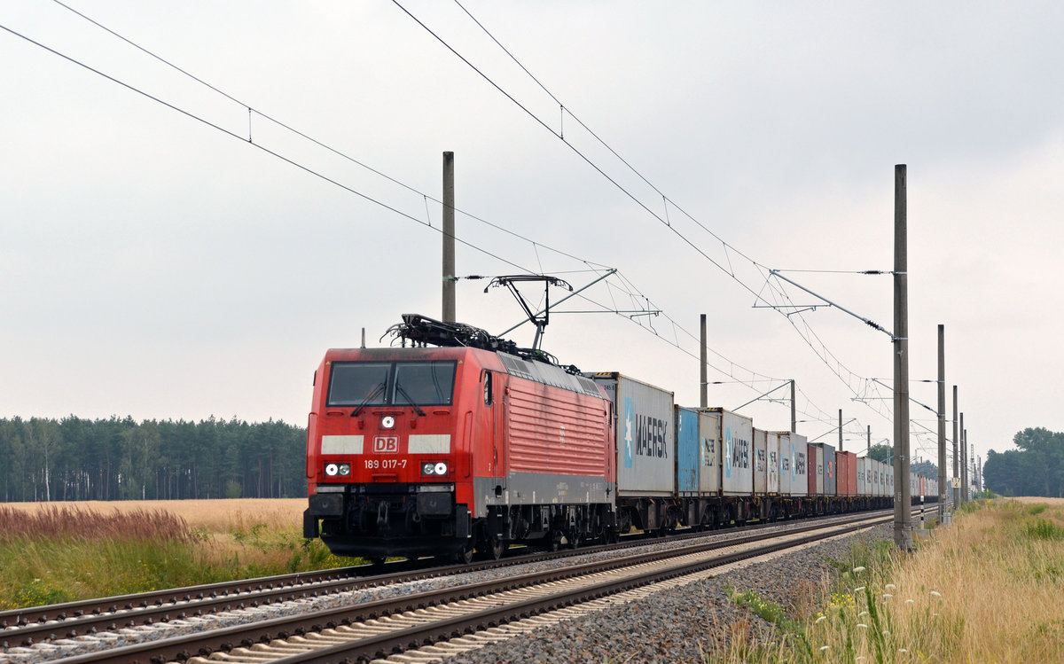 Mit einem Containerzug am Haken rollte 189 017 am 17.07.16 bei Marxdorf Richtung Falkenberg/Elster.