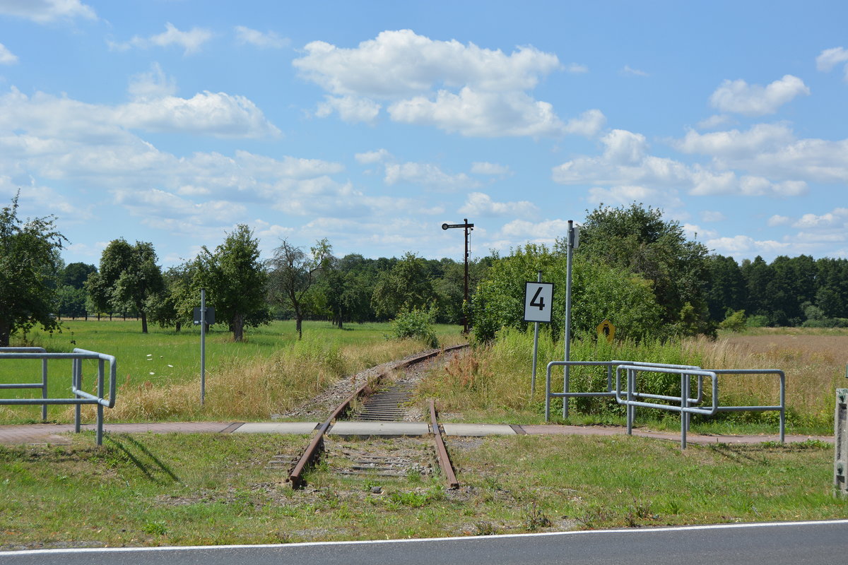 Obwohl hier seit fast 17 Jahren kein Zug mehr fährt ist die Strecke in einen erstaunlich guten Zustand. Im Hintergrund ist das Einfahrtsignal B aus Bad Selzig zu sehen.