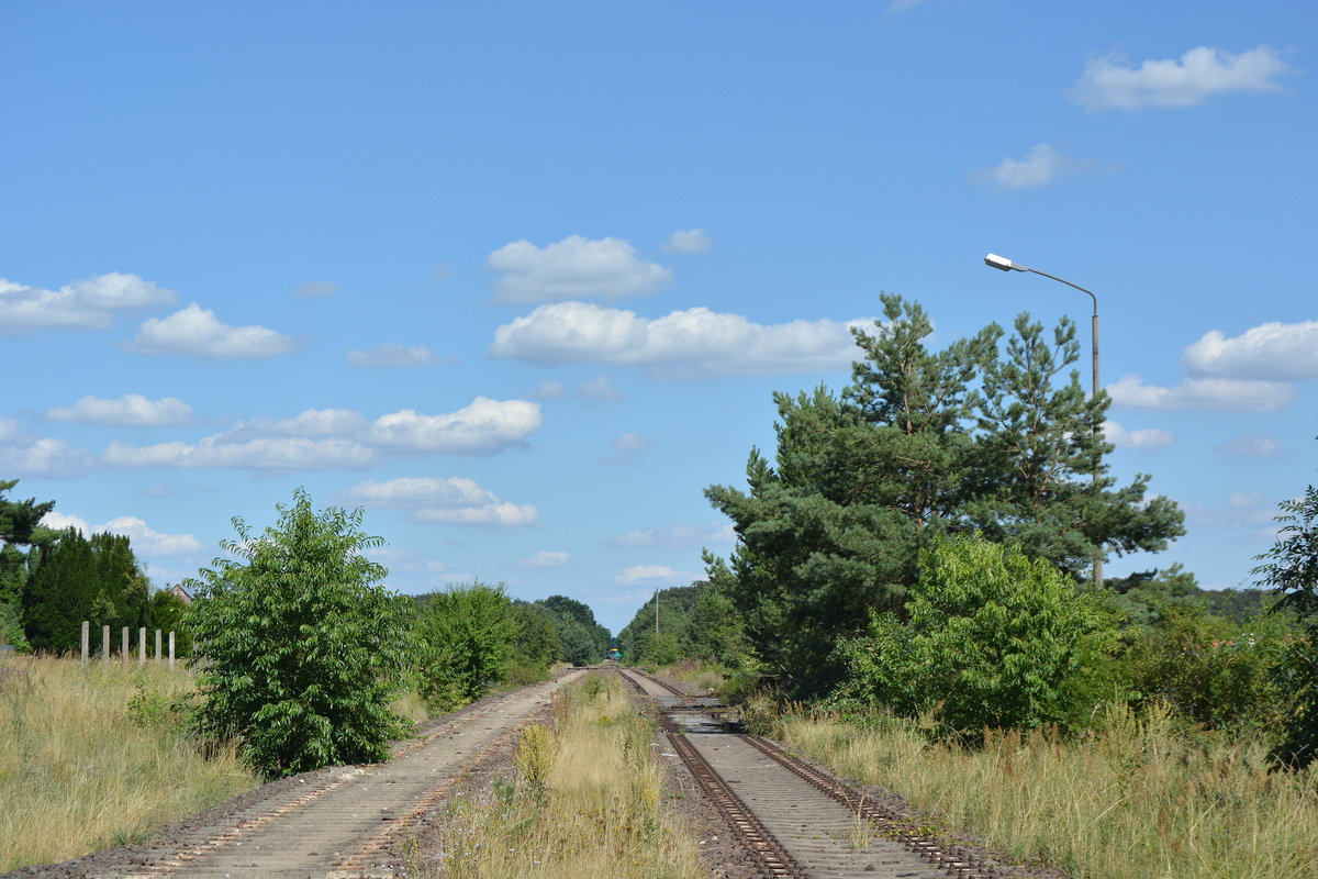 Blick in Richtung Güterglück auf der einstigen Kanonenbahn. 1992 wurde die Strecke ab Nedlitz bis Güterglück 2 Gleisig ausgebaut und 1 Jahr elektrifizert. Schon 10 Jahre später wurde die Strecke stillgelegt und wird nun teilweise zurück gebaut.