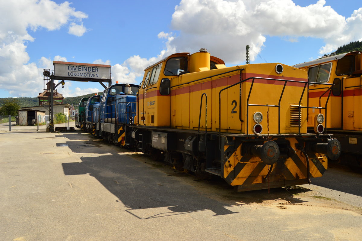 Noch immer stehen einige Dieselloks aus verschiedenen BASF-Standorten auf den ehemaligen Freiladegleisen in Mosbach. 21.8.2016