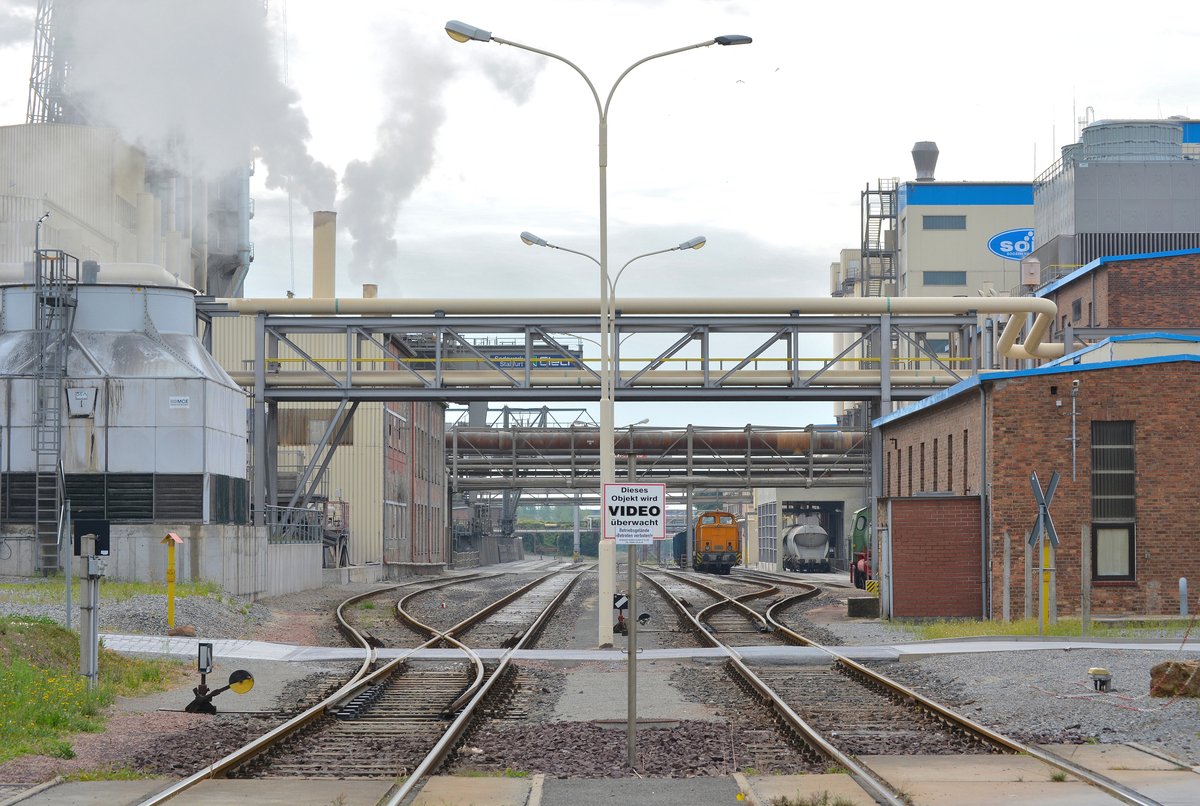 Blick auf die Bahnanlagen am Sodawerk in Staßfurt.