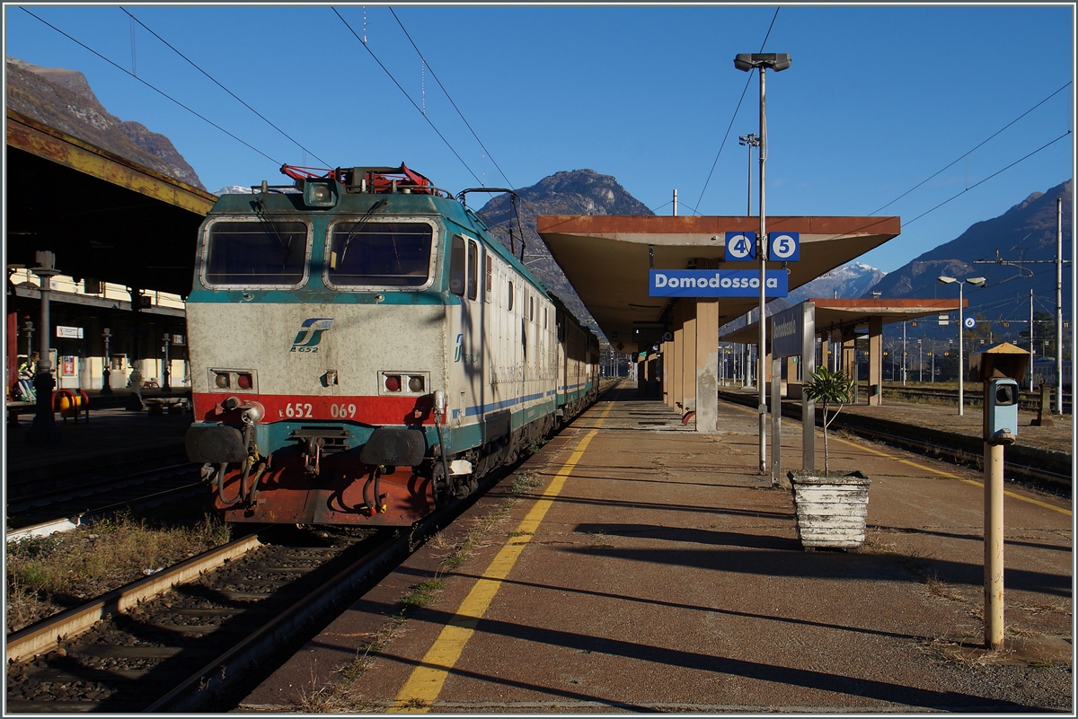 Die FS E 652 069 mit einem Lokzug in Domodossola.