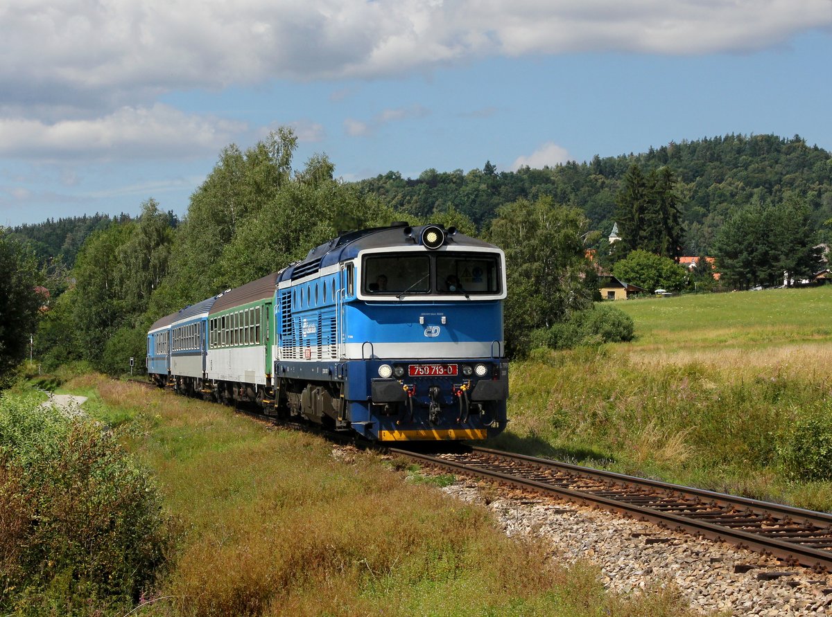 Die 750 713mit einem Os nach Nová Pec am 07.08.2016 unterwegs bei Holubov.