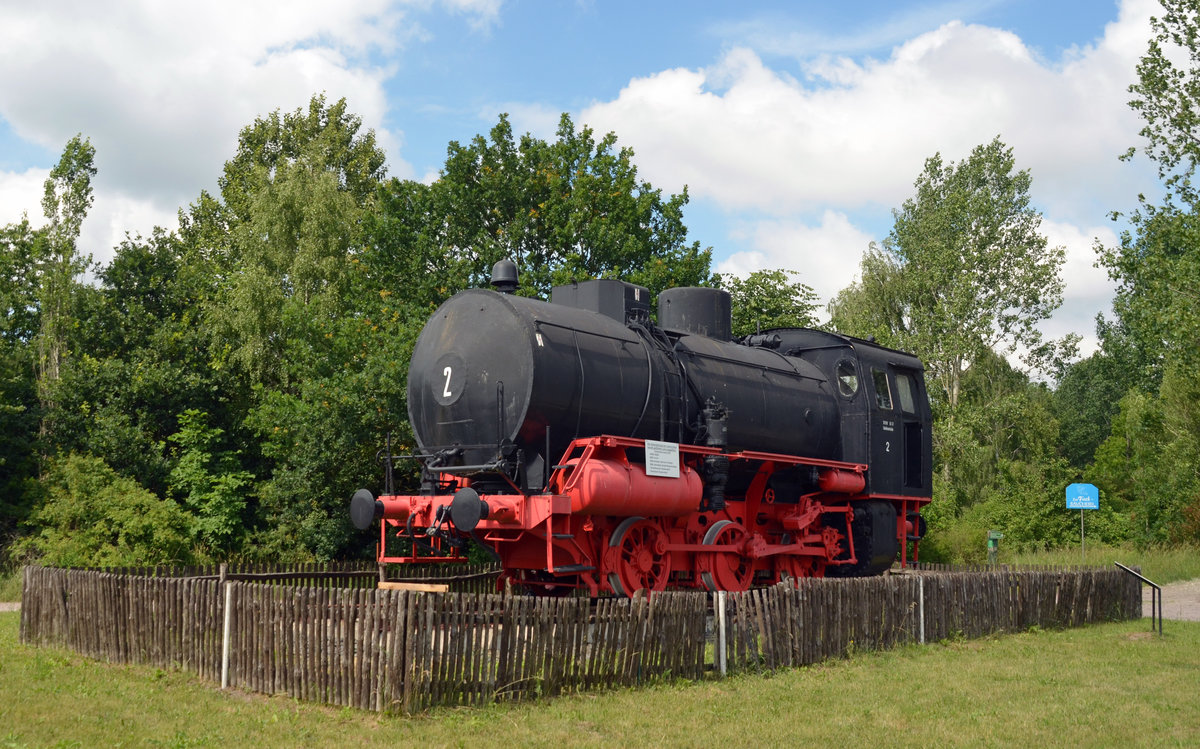 In Friedersdorf bei Bitterfeld steht diese Dampfspeicherlok als Zeitzeuge aufgestellt. Sie wurde von 1975 bis 1993 im Reichsbahnkraftwerk Muldenstein eingesetzt. Fotografiert am 19.06.16.